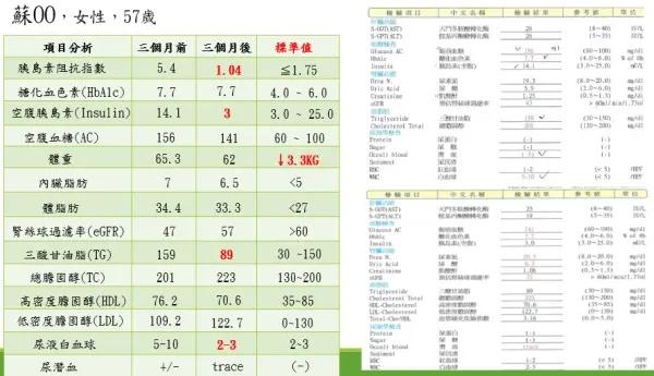 - 胰島素阻抗指數由1.16下降至0.3 (胰島素阻抗指數標準值:≤1.75)